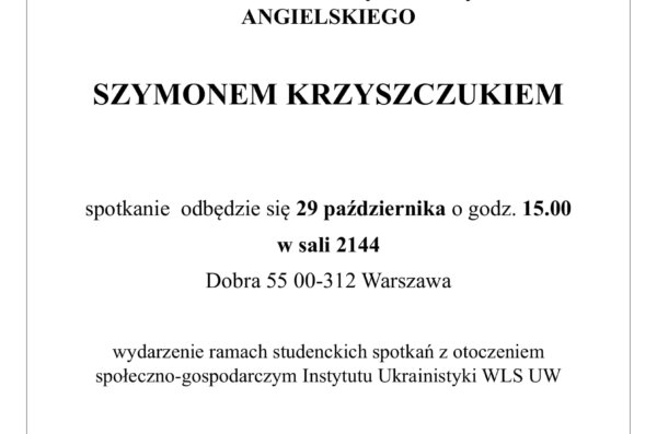 Czytaj więcejSerdecznie zapraszamy na spotkanie w ramach seminariów międzyuczelnianych organizowanych przez Instytut Ukrainistyki UW oraz Instytut Filologii Wschodniosłowiańskiej Uniwersytetu Jagiellońskiego. Spotkanie odbędzie się 22 paździetrnika 2025 r. Link do rozmowy wideo: https://meet.google.com/vwm-nxtx-dzu