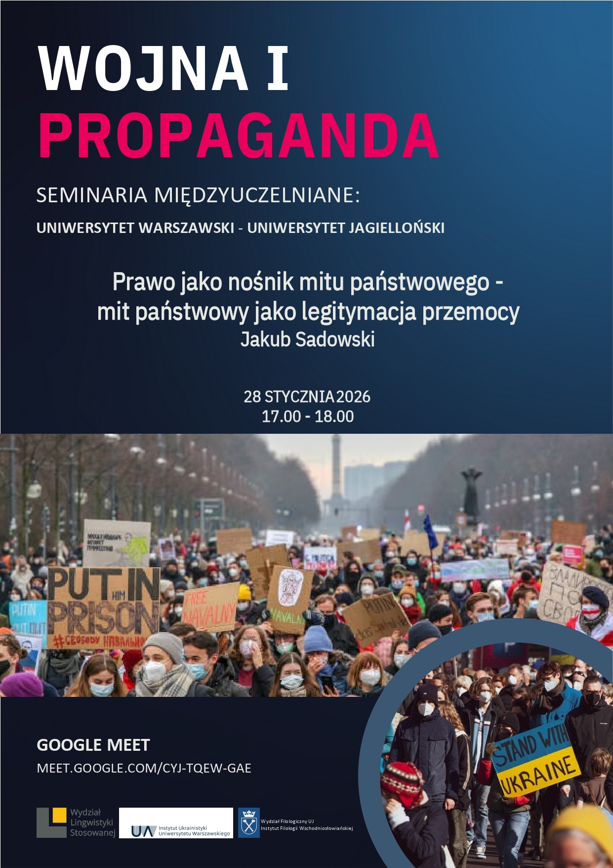 Zapraszamy na kolejne spotkanie w ramach seminariów międzyuczelnianych organizowanych przez Instytut Ukrainistyki UW oraz Instytut Filologii Wschodniosłowiańskiej Uniwersytetu Jagiellońskiego. Spotkanie 28 stycznia 2026 r.Link do rozmowy wideo: MEET.GOOGLE.COM/CYJ-TQEW-GAE.